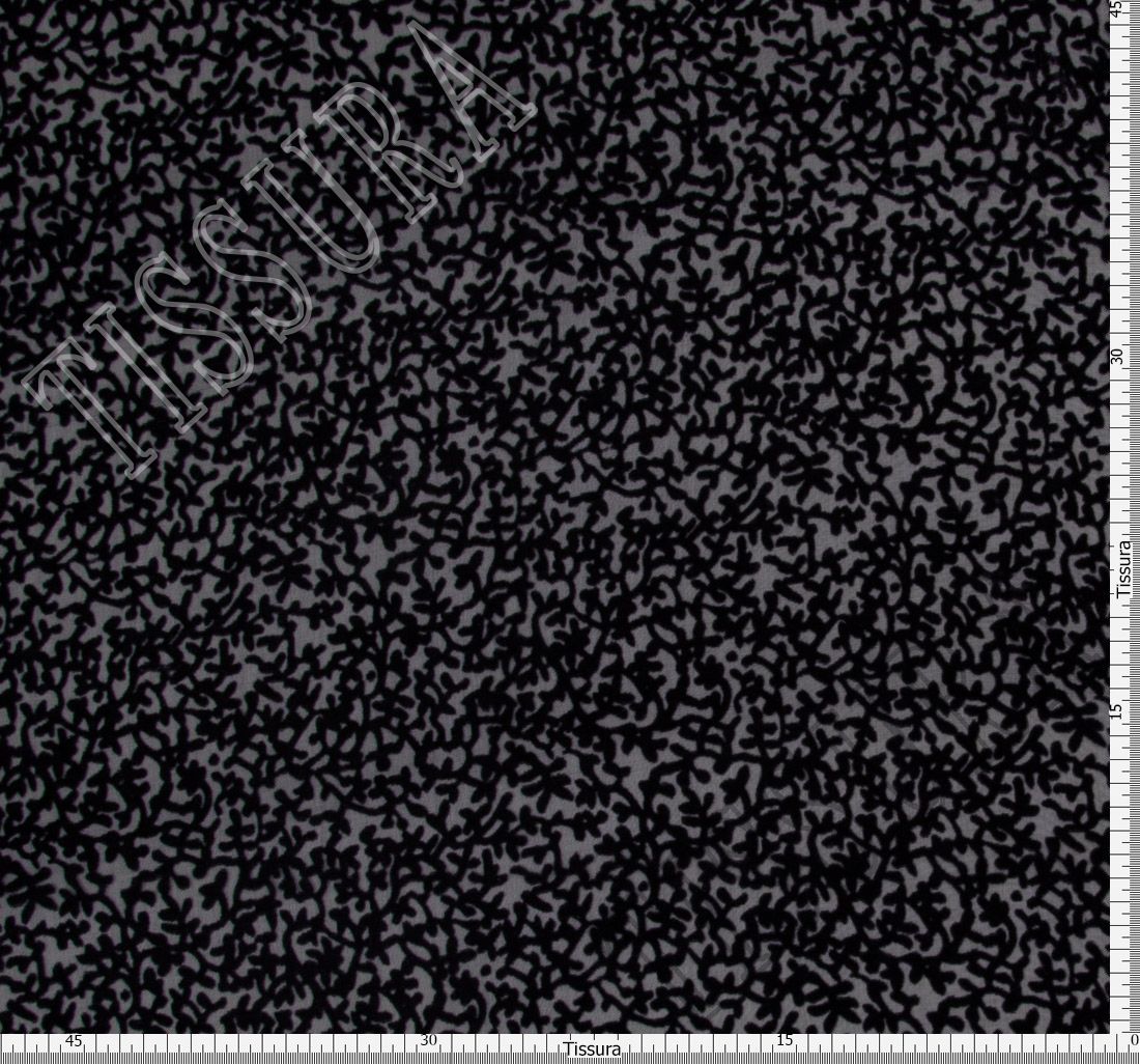 This dainty grey chiffon fabric boasts a sophisticated purple devore ornament, obtained by burning away viscose fibers. This feast for eyes is lustrous and marvelously soft to the touch. Our velvet is an undeniably elegant choice for any apparel be it a feminine top or luxurious eveningwear.